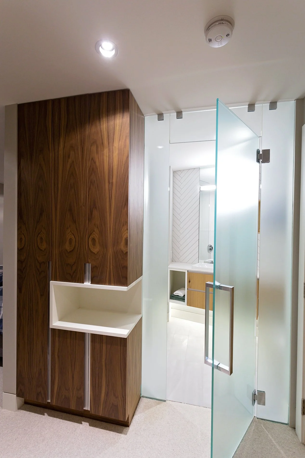Starting off as a single townhouse renovation, soon turned into expanding it next door and combining the units. Through the development variance permitting application we created a split level living with entertainment at the forefront. Clever design and engineering tactics were implemented to enable as much open space as possible. Fully custom millwork in the kitchen and bathrooms delivered a modern and easy living home. Not to mention that epic custom fireplace too.